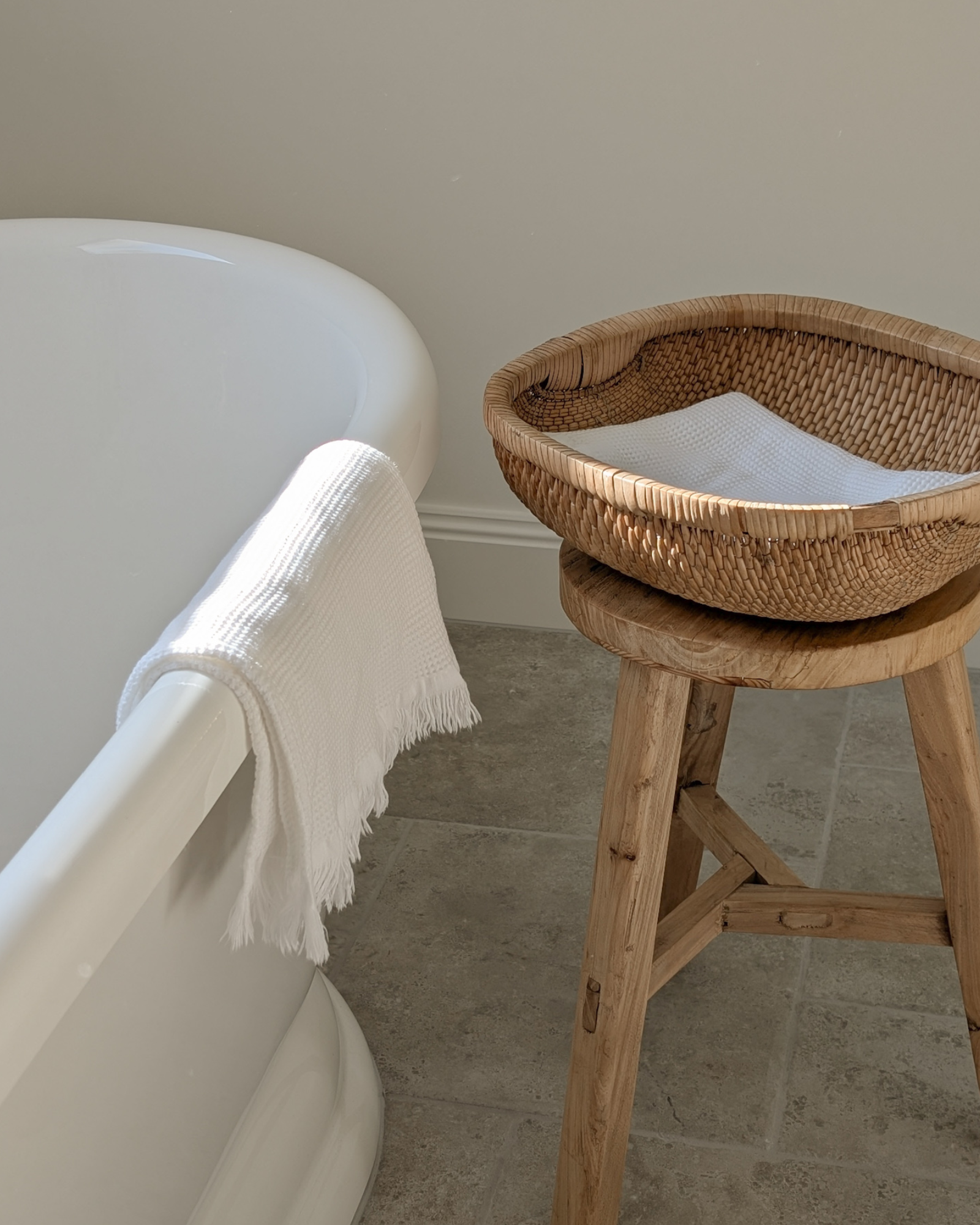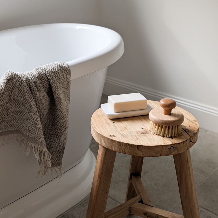 When it comes to creating a peaceful, tranquil space like a bathroom, the key lies in the balance of natural elements and thoughtful design. The materials you choose can set the tone and elevate the ambiance. By incorporating elements like smooth marble, beautiful tapware like unlacquered brass or polished nickel, cosy and organic towels and textural pieces like an elm stool, you can instantly create a soothing environment that feels both luxurious and functional.