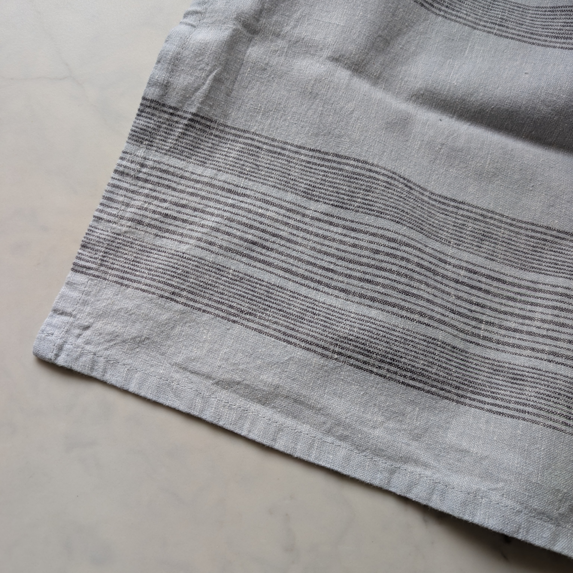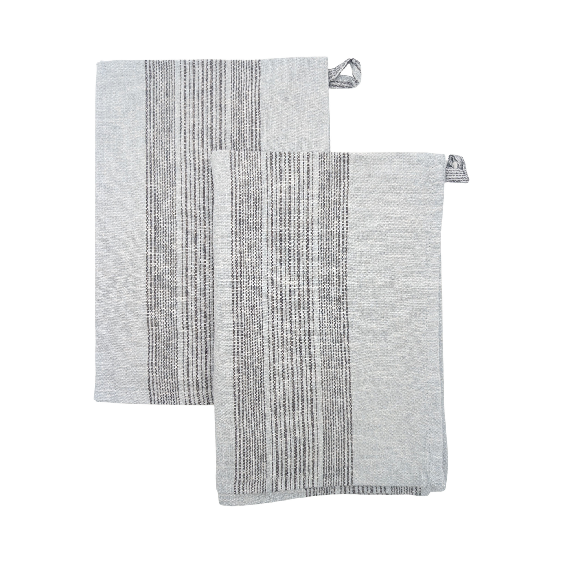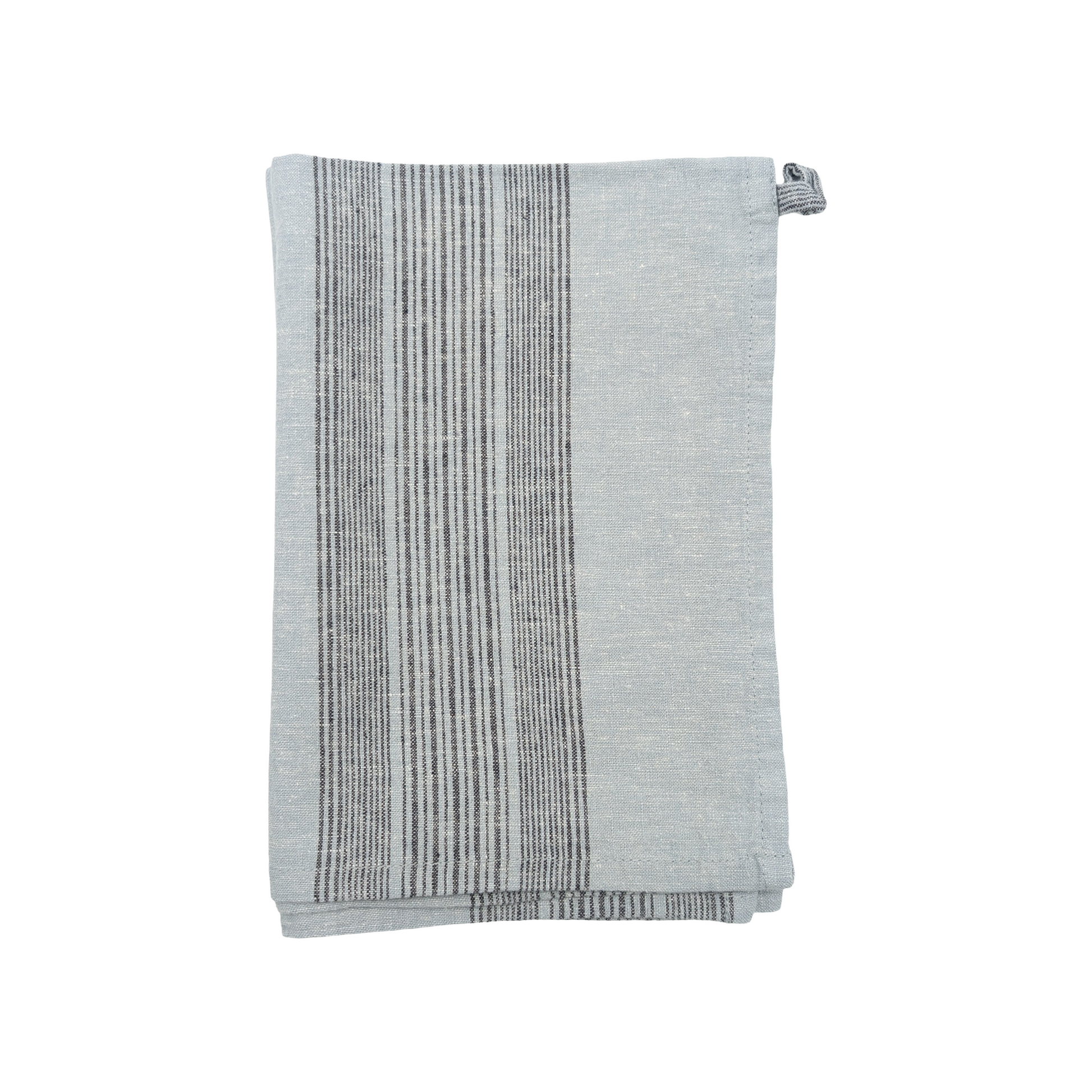 Elevate your everyday kitchen moments with this beautiful linen-blend tea towel. Designed in a soft, muted blue and featuring narrow navy pinstripes that bring a relaxed, earthy elegance to your kitchen.