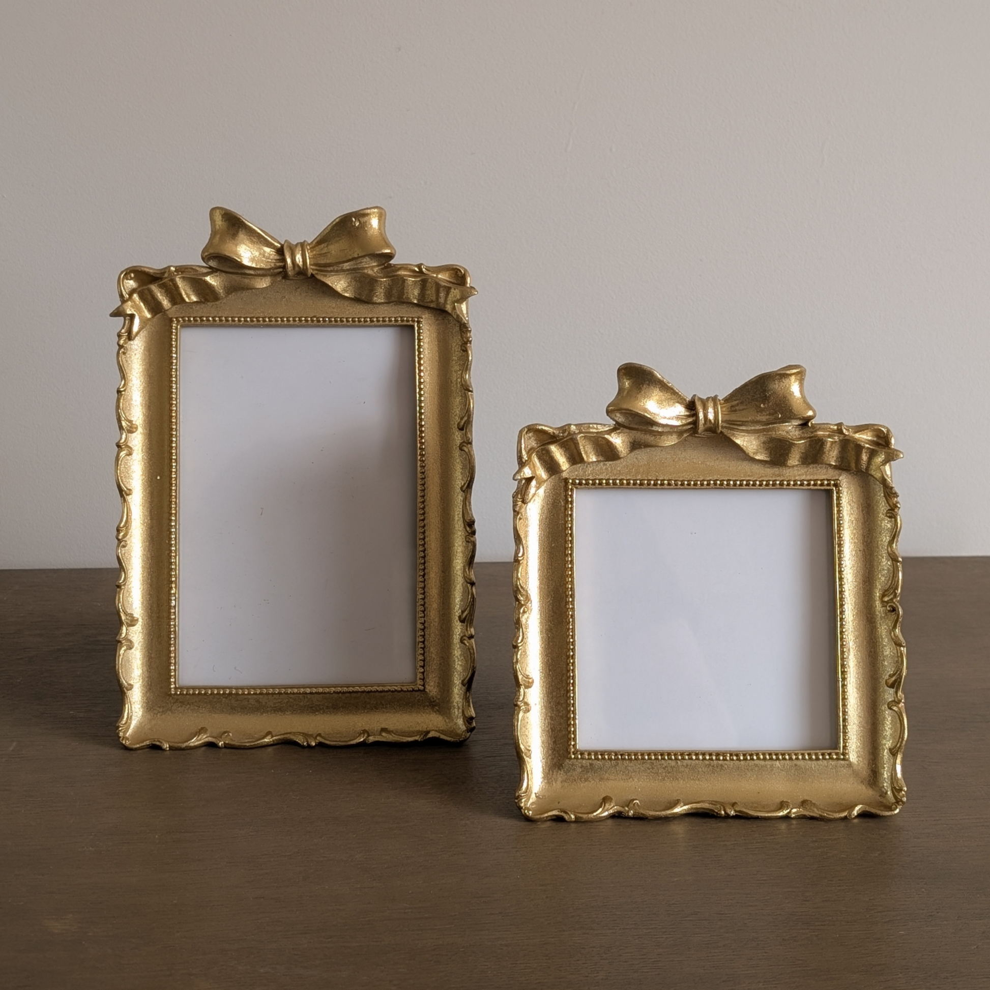 Add a festive touch of elegance to your home this season with these beautiful gold photo frames. Featuring a charming bow detail and scalloped edging, each frame captures the warmth and joy of Christmas memories.