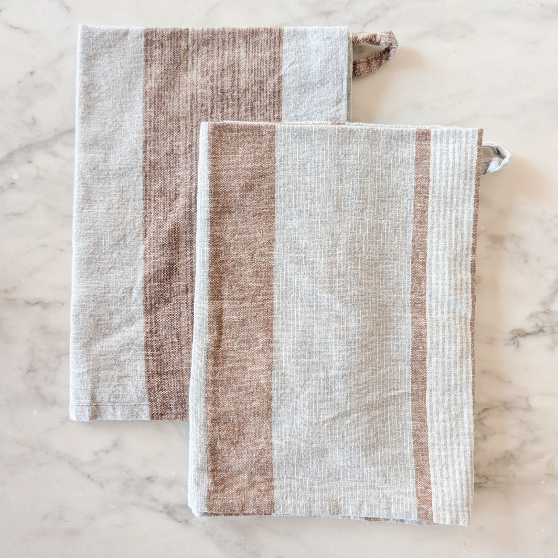A considered collection of beautiful, everyday pieces designed to elevate the heart of the home. This gift box includes 2 soft linen cotton blend tea towels, a classic brass pepper mill, a handcrafted spoon rest, a beech wooden spoon, and a delicate mesh bow for the perfect finishing touch. Each item has been thoughtfully assembled to balance practicality with timeless style.
