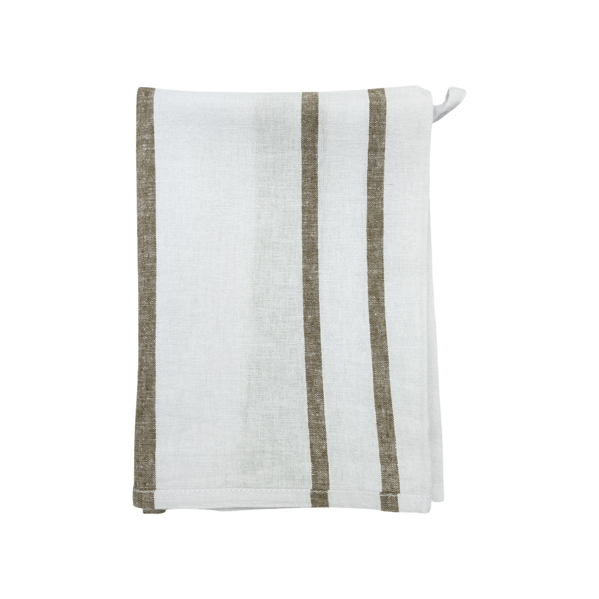 Elevate your everyday kitchen moments with this beautiful linen-blend tea towel. Designed in a soft, white and muted army green and featuring wide and narrow stripes, that bring a relaxed, earthy elegance to your kitchen.