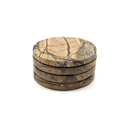 Timeless and luxurious, our Fosil Stone Coasters are incredibly chic and add a feeling of opulence to your space. The set of 4 coasters have unique veining and various shades of brown throughout. Place on your coffee table to add a hint of warmth and interest.